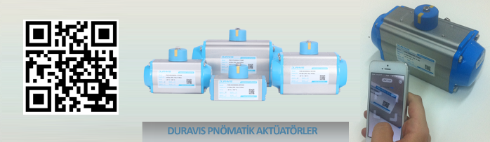 QR kod, DURAVIS Pnömatik aktüatörlerin etiketlerinde standart olarak yer almaktadır. Bugün itibariyle tüm pnömatik aktüatörlerde QR kodu yeralmaktadır. Bu kod ile sahada ortam koşulları sebebiyle ayırt edilemeyen model, ölçü, bağlantı gibi ürün detaylarına ulaşılmaktadır.