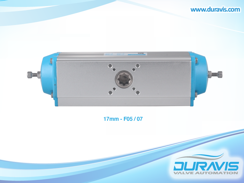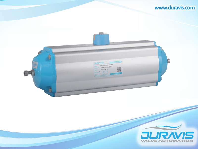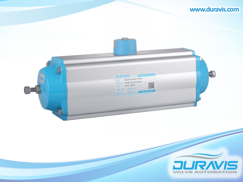 Industry-proven pnematic actuators; 180° DURAVIS PAR Series Actuators are ideal for multi-port (3, 4, 5 way), ball valves, 3-way plug valves, conveyor diverters, bulk material diverters and any other application requiring reliable pneumatic torque over a 180 rotation.