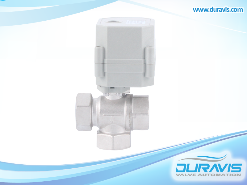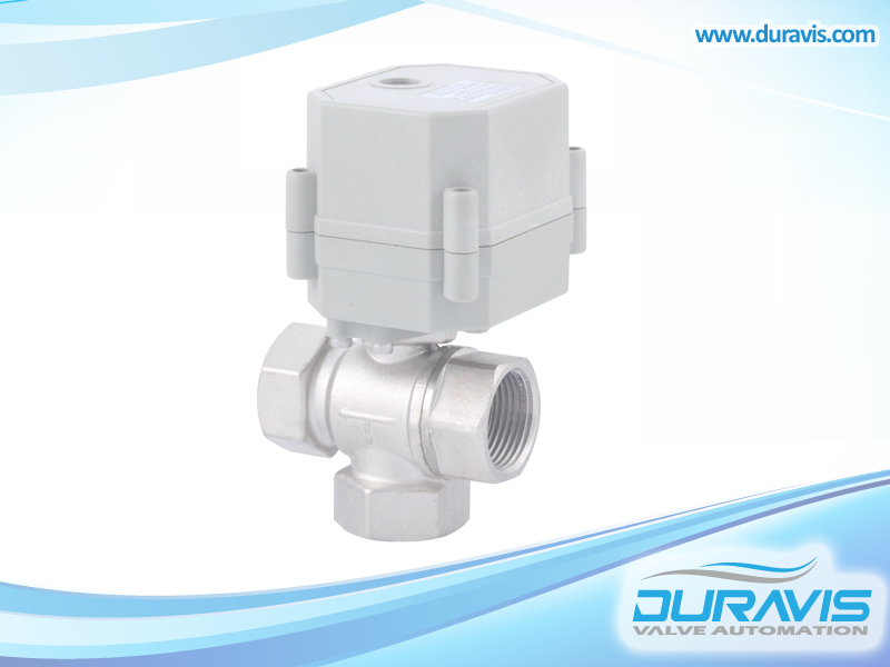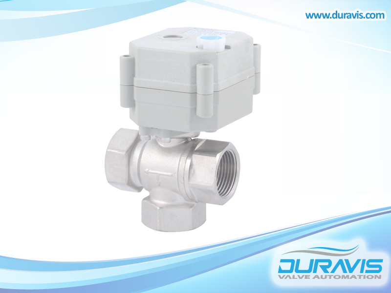 3/2 way, T-shaped nickel-plated brass ball valves come in two different model; 4-wire (220V AC), 3-wire (24VAC/DC) control. Used at low-pressure lines for general purpose and an economical flow diversion option. Usage area is generally HVAC.