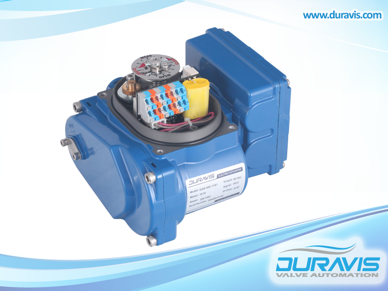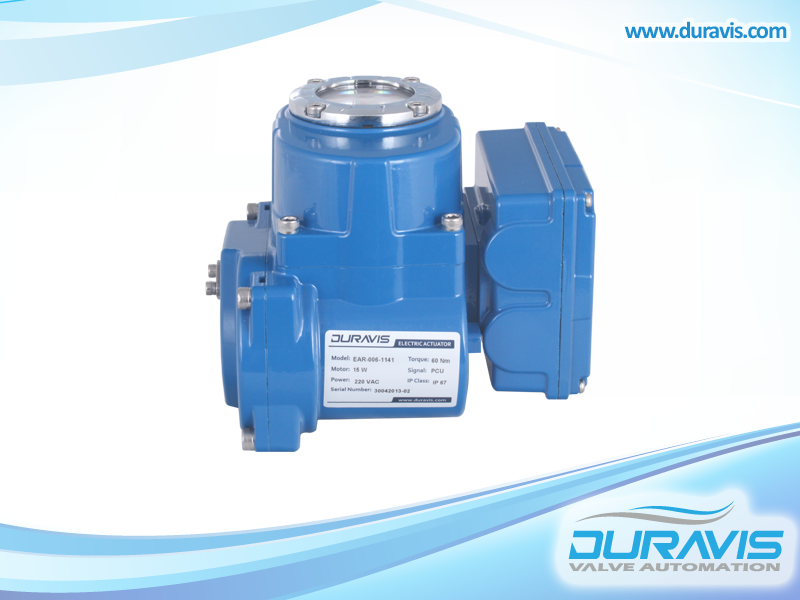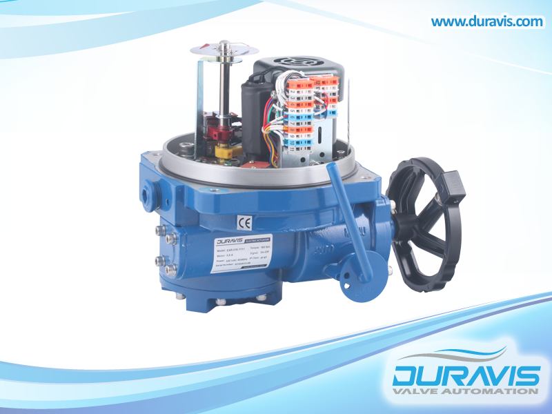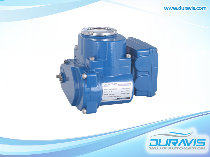 DURAVIS Rotary Electric Actuators are used to proportional control of quarter-turn valves such as ball valves, butterfly valves, rotary plug valves and dampers. DURAVIS 220 VAC 1ph EAR Series electric actuators are presented with diverse torque options from 40Nm up to 3000Nm with different features.