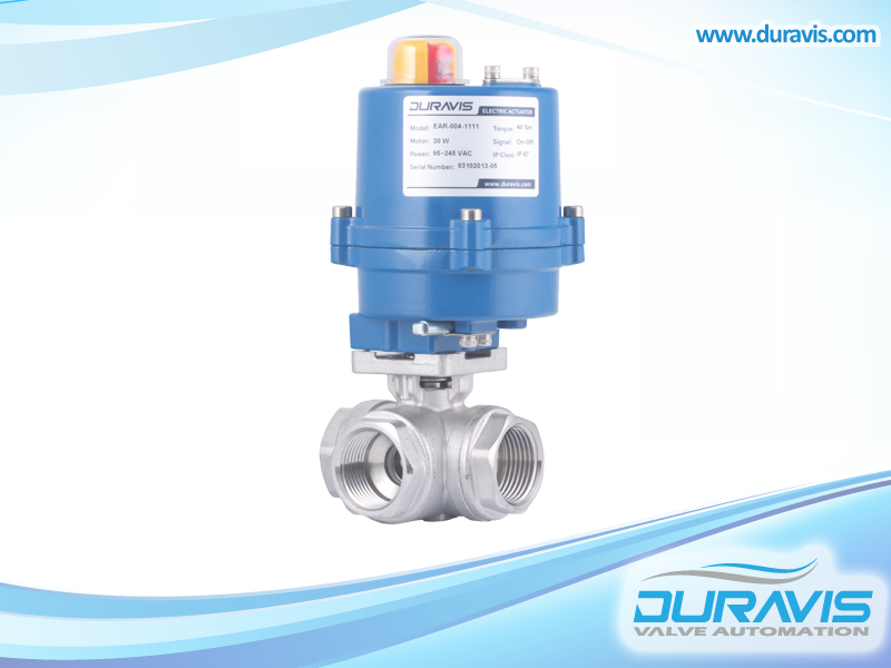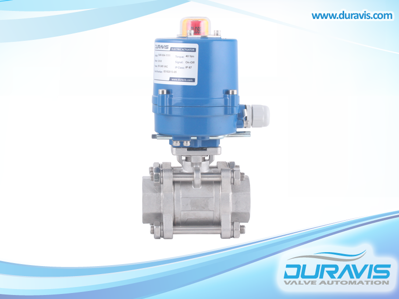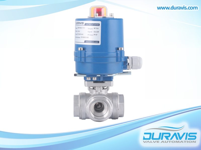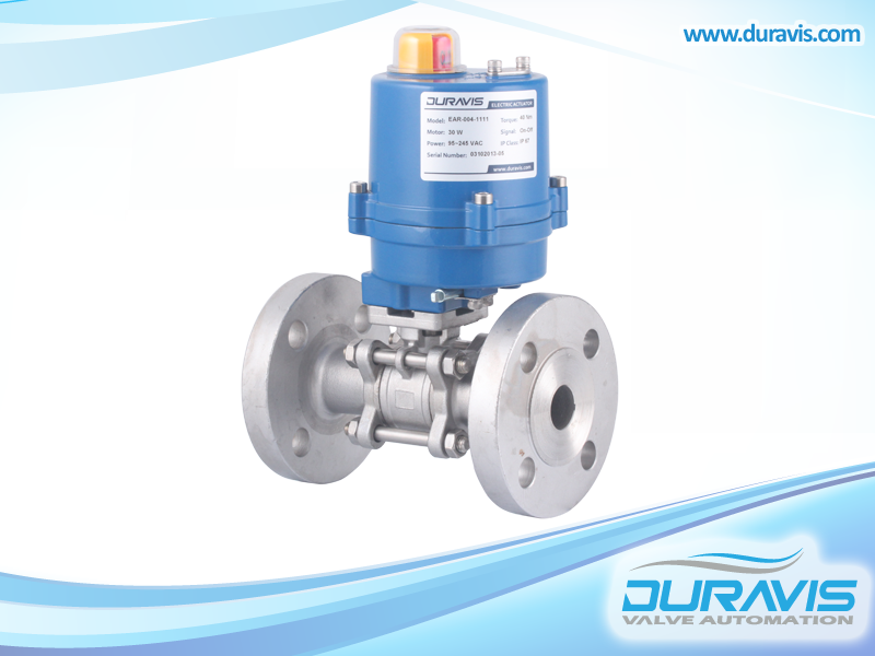 DURAVIS elektrik aktüatörlü 2/2 yollu, pirinç, dişli, küresel vanalar; çeşitli akışkanların aç-kapa ve/veya oransal kontrolünde kullanılır. Tipik uygulama alanları; hava kurutma/kirlilik kontrol ekipmanları, proses kontrol, yıkama makineleri, tekstil boyama ve kurutma makineleri, şişeleme ve dozajlama ekipmanları vb.