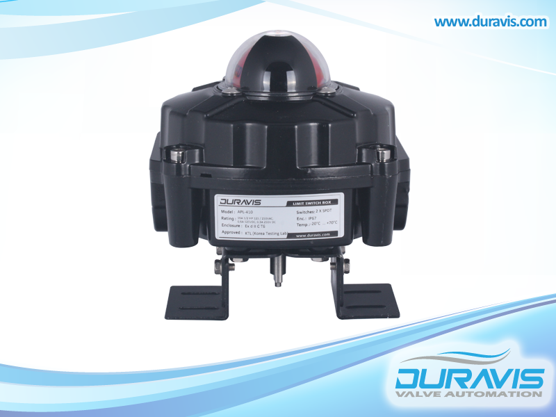 DURAVIS APL serisi rotary limit switch kutuları, çeyrek dönüşlü aktüatörlerin / vanaların hem görsel pozisyonunu gözlemlemek, hem de uzaktan elektriksel sinyali alabilme imkanı sağlar. APL serileri, weatherproof ve exproof gibi farklı koruma sınıfları ile farklı sayıda ve çeşitte switch tipi ile sunulmaktadır.